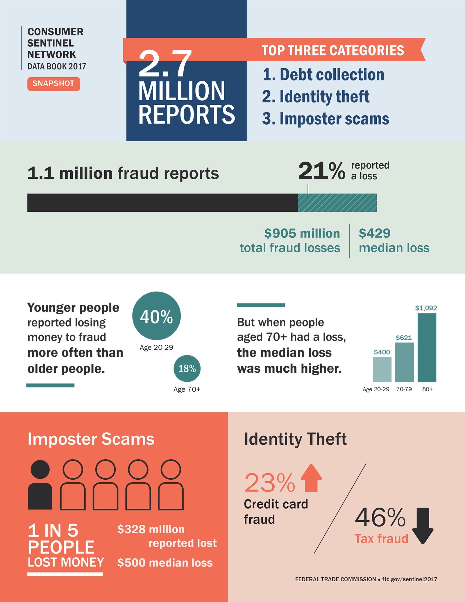 Federal Trade Commission says consumers in their twenties said they lost money to fraudsters, compared to 18% for those 70 or older
